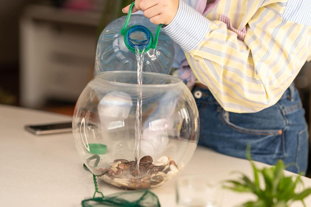 Начинаем самый ответственный этап. Сначала добавьте кондиционер в пустой аквариум согласно инструкции – он нейтрализует хлор и связывает тяжелые металлы. Затем заливайте воду. Используйте блюдце или лист бумаги, чтобы струя не размыла грунт. Заливайте медленно, до уровня 2-3 см от верха.