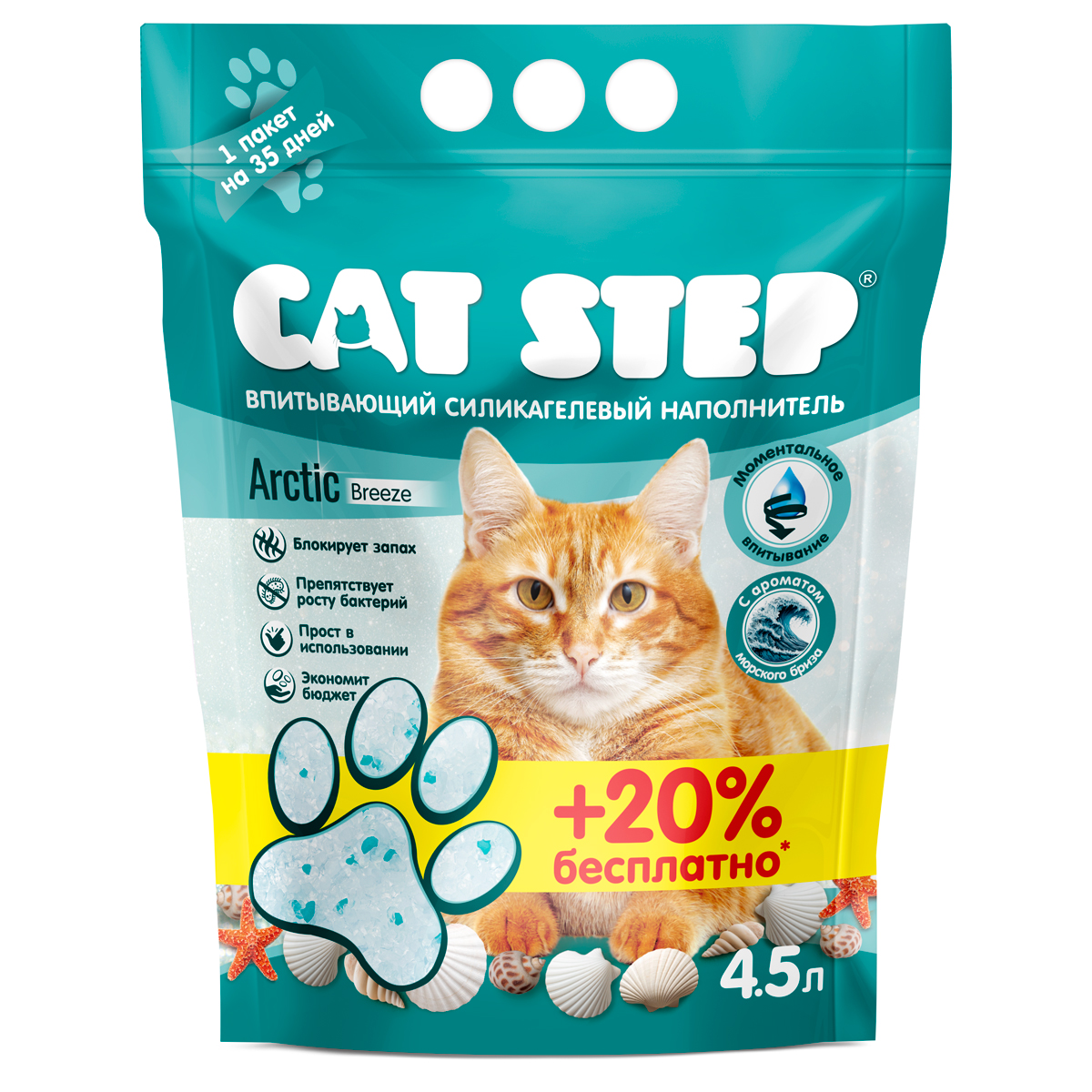 АКЦИЯ (+20% бесплатно) CAT STEP Arctic Breeze Наполнитель силикагелевый впитывающий, 4,5 л