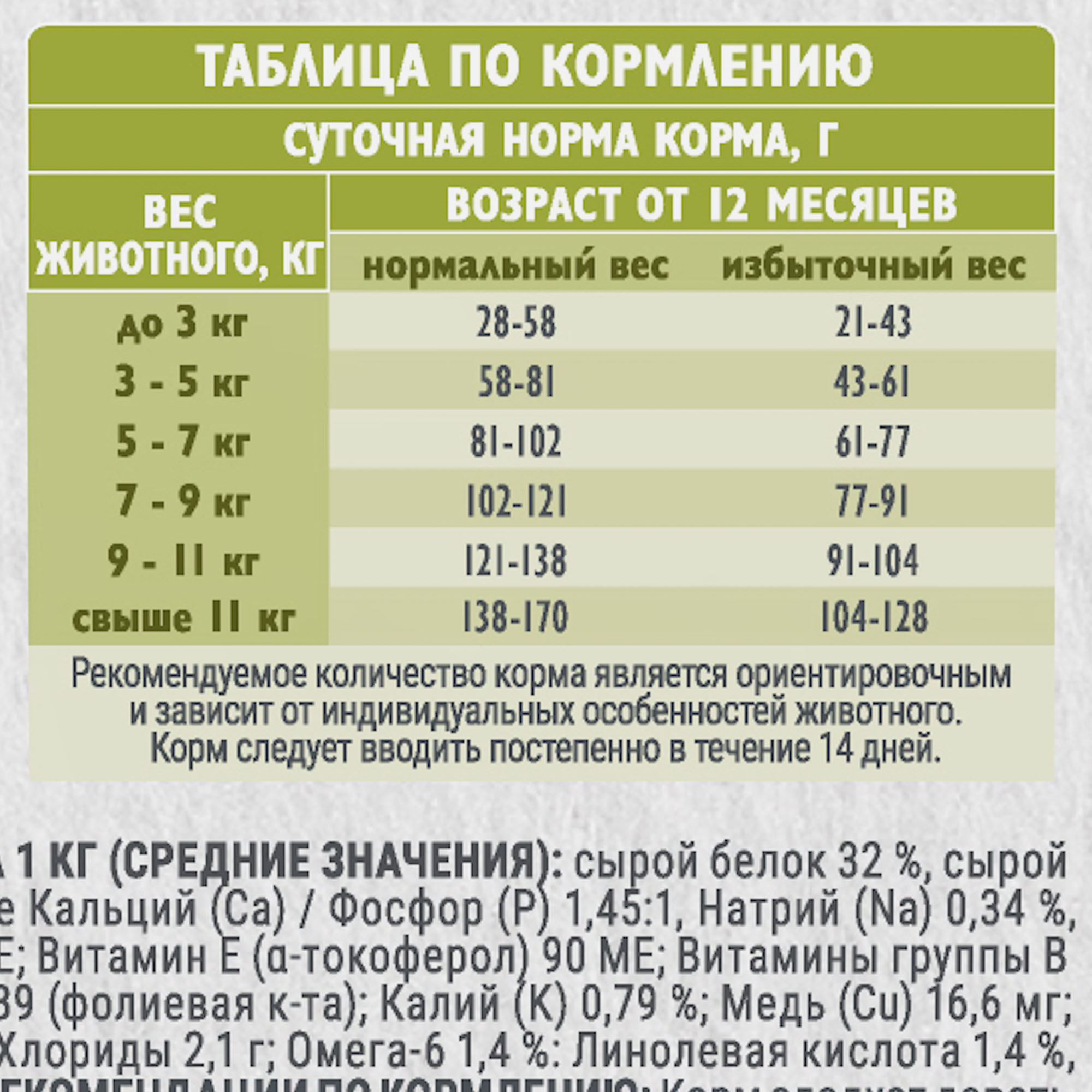 Формула корма также включает витамины, минералы и антиоксиданты для укрепления иммунитета, а пищевые волокна способствуют здоровому пищеварению и поддержанию нормальной микрофлоры кишечника.