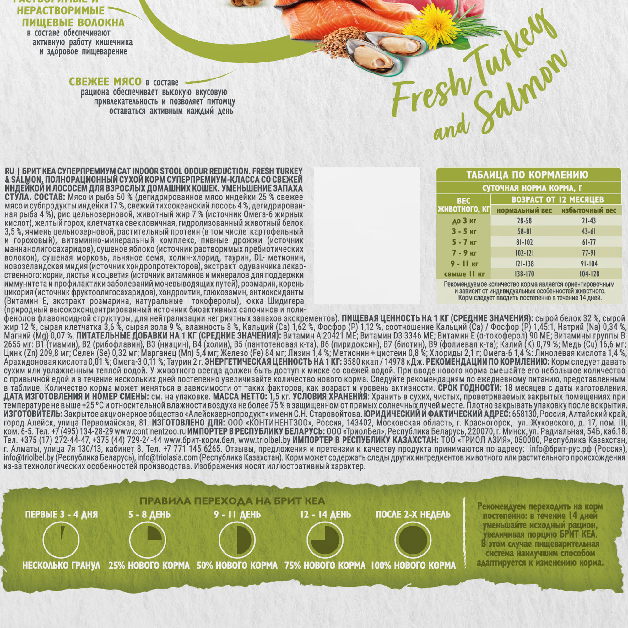 БРИТ КЕА, Сух. корм с индейкой и лососем для взр. дом. кош.INDOOR STOOL ODOUR REDUCT, 1.5кг, 1066972