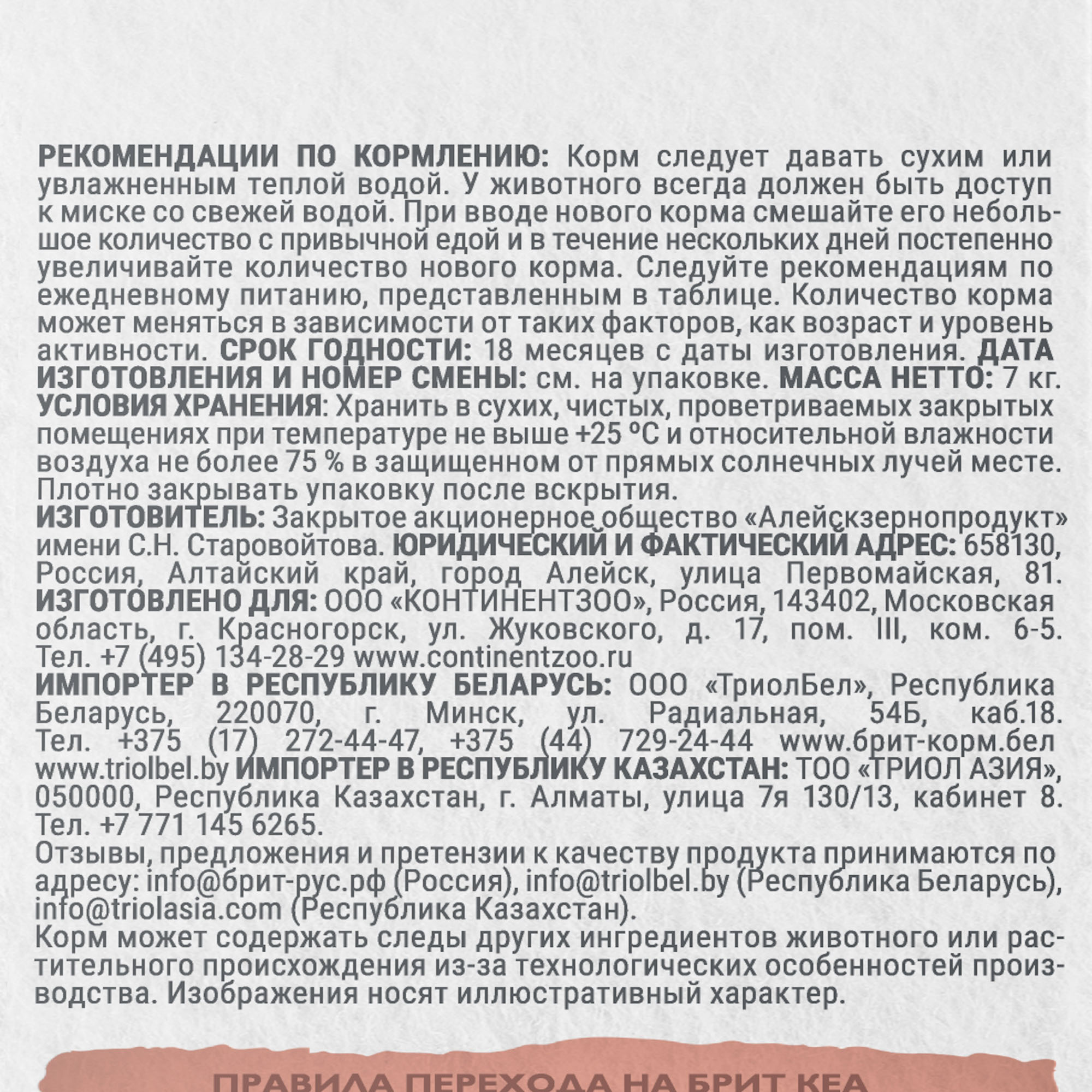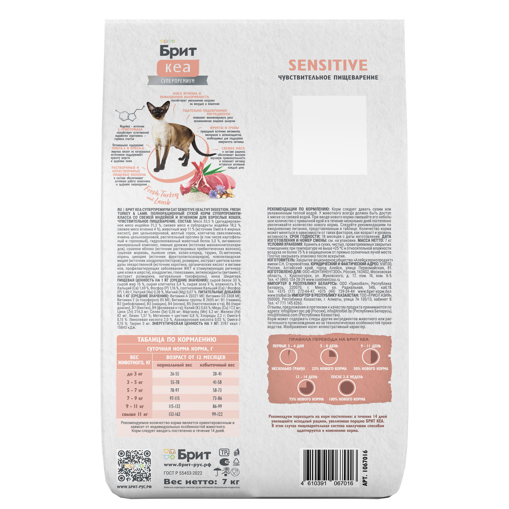 БРИТ КЕА, Сухой корм с индейкой и ягненком для взр. кошек. SENSITIVE HEALTHY DIGESTION, 7кг, 1067016