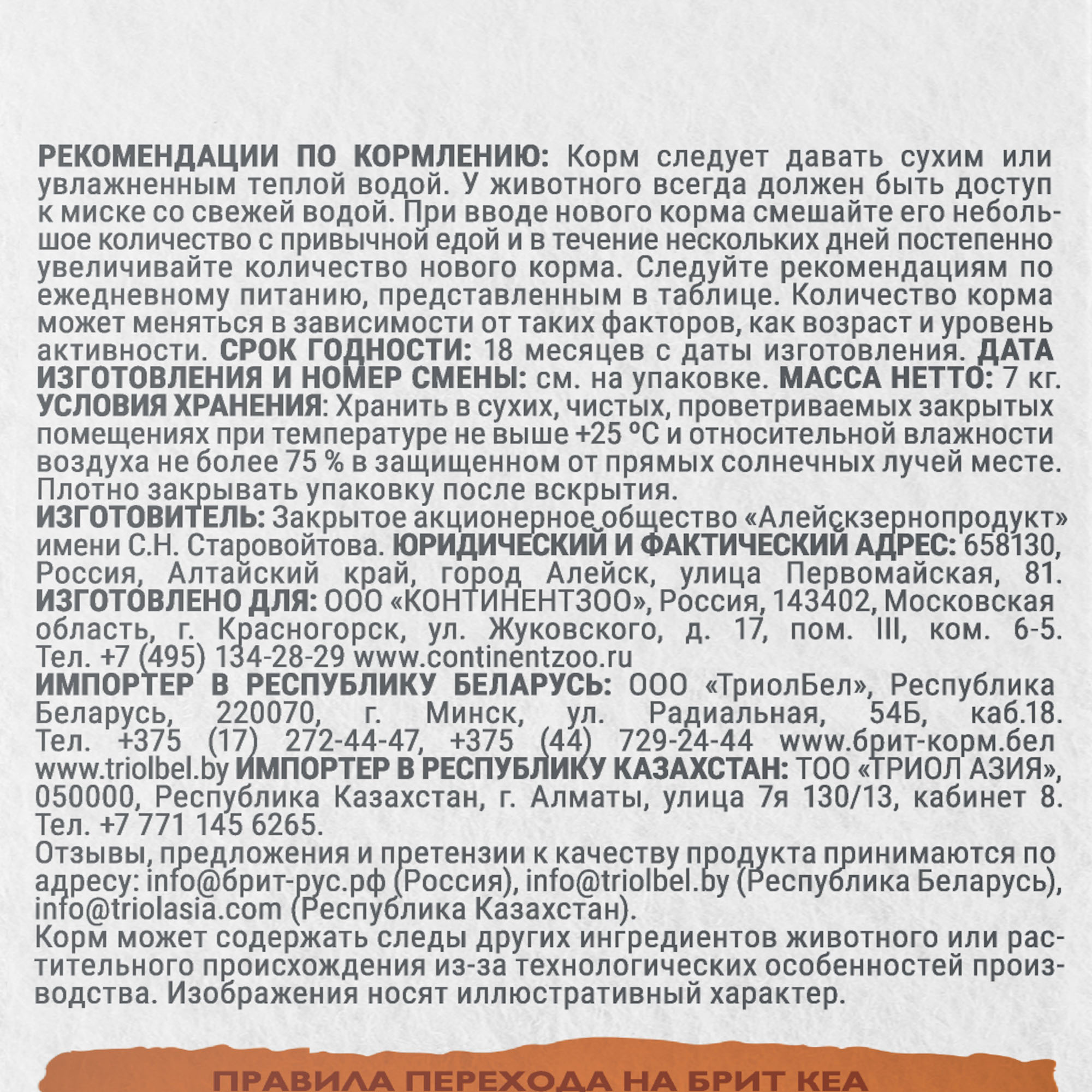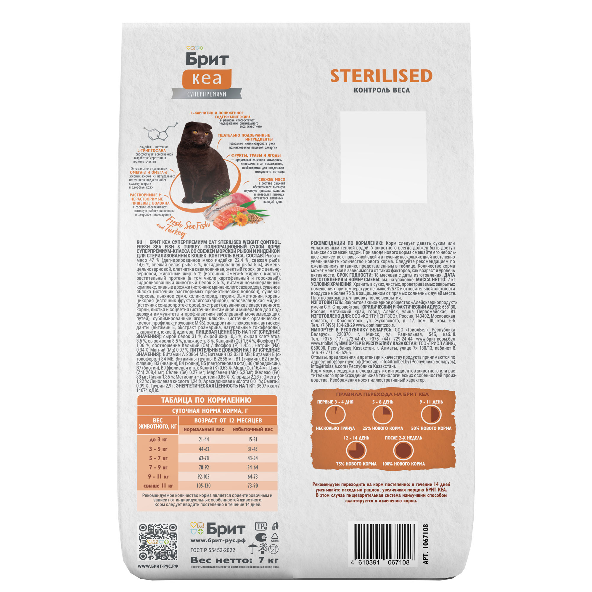 БРИТ КЕА, Сухой корм с морской рыбой и индейкой для стерил. кошек. WEIGHT CONTROL, 7 кг, 1067108