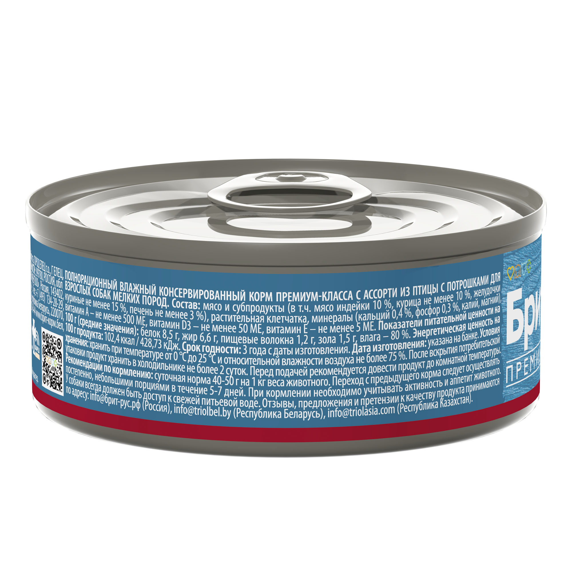 BRIT PREMIUM BY NATURE, Консервы из птицы с потрошками для взрослых собак мелких пород,100г,5048984