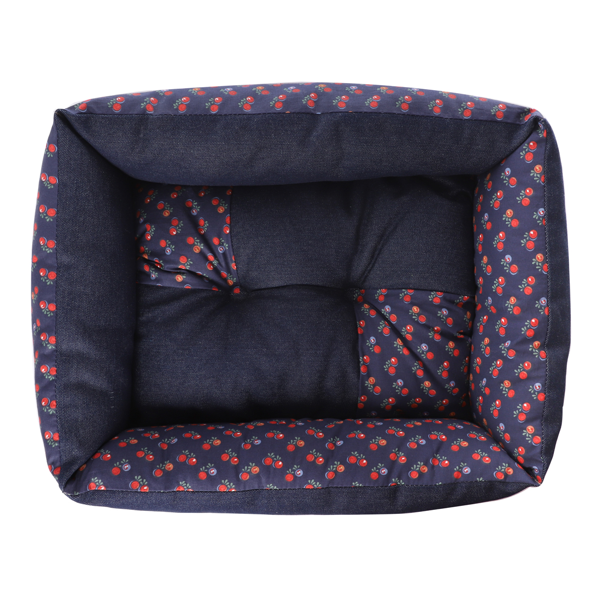 Подарите своему питомцу уютное местечко для отдыха с этой стильной и прочной лежанкой! Выполненная из комбинации практичной джинсовой ткани темно-синего цвета и мягкого перкаля с очаровательным рисунком, напоминающем россыпь красных ягодок, эта лежанка станет любимым местом вашего питомца. Прочная джинса обеспечит долговечность, а нежный перкаль подарит комфорт и уют. Идеальное сочетание стиля и функциональности для вашего четвероногого друга! Размер: 470*370*170мм. Цвет: синий.