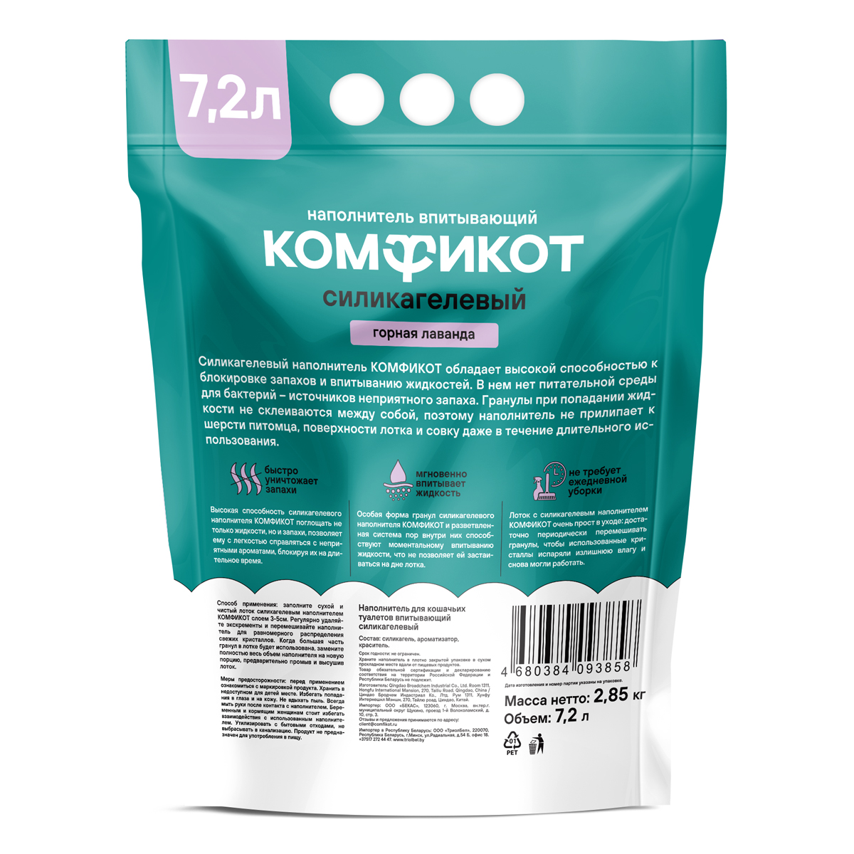 КОМФИКОТ Наполнитель силикагелевый впитывающий горная лаванда, 7,2 л