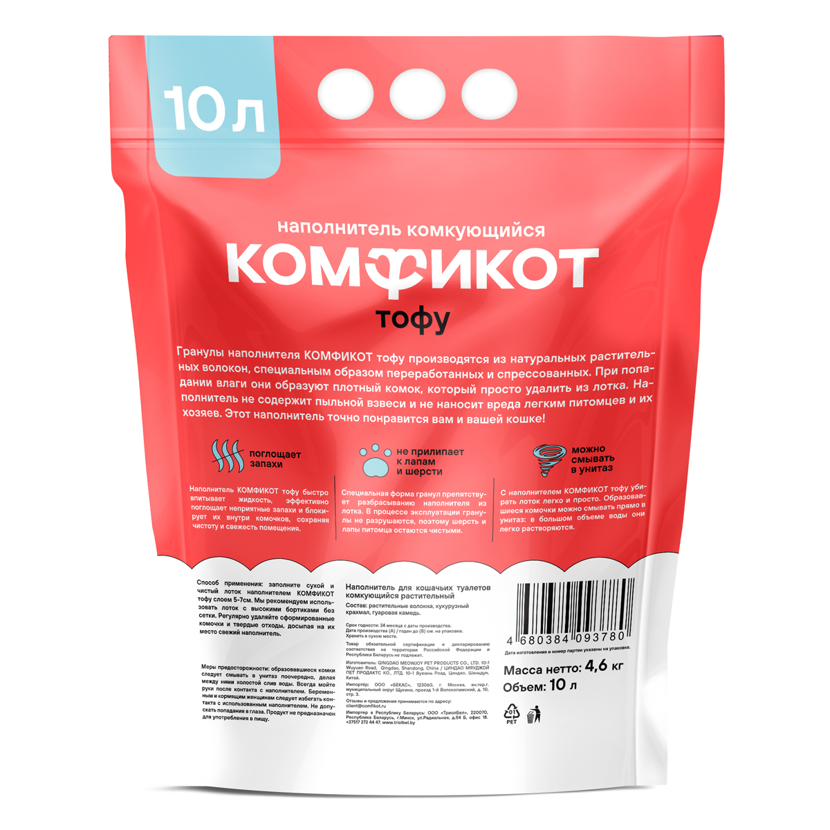 КОМФИКОТ Наполнитель тофу комкующийся без аромата, 10 л