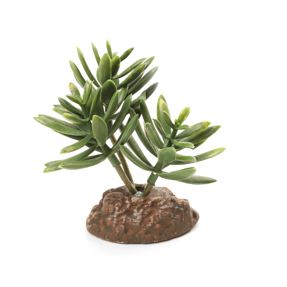 Растения - это не только завершающий штрих в оформлении, но и необходимый атрибут любого террариума. Они дают укрытие и тень, по ним животное может перемещаться, они придают трехмерность внутреннему пространству террариума. Пластиковое растение на подставке из керамики подходит для оформления пустынных, полупустынных и тропических террариумов. Неоспоримое преимущество искусственных растений в том, что им не нужен полив, в них не заводятся паразиты и грибки, их легко мыть и дезинфицировать, и прослужат они неизмеримо дольше, чем живые растения.