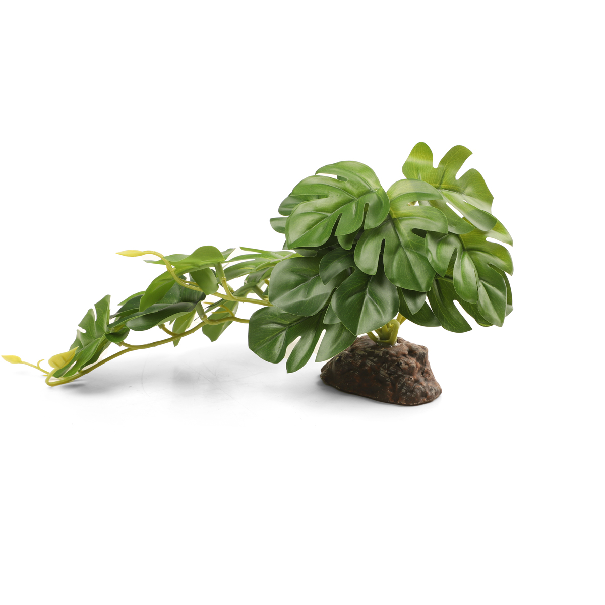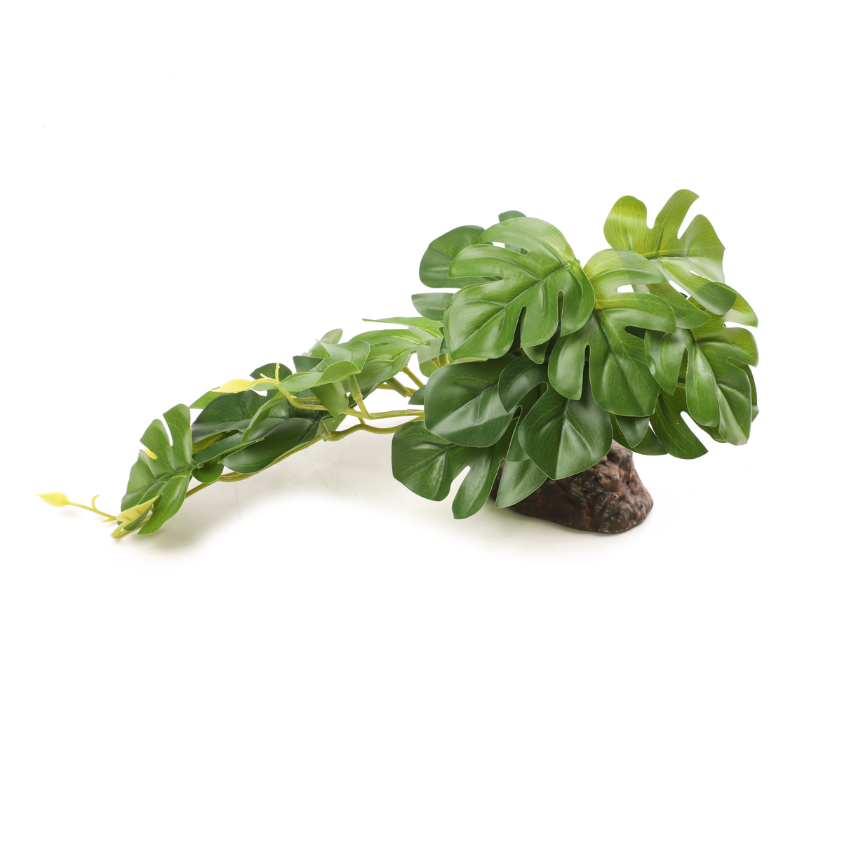 Растения - это не только завершающий штрих в оформлении, но и необходимый атрибут любого террариума. Они дают укрытие и тень, по ним животное может перемещаться, они придают трехмерность внутреннему пространству террариума. Пластиковое растение на подставке из керамики подходит для оформления пустынных, полупустынных и тропических террариумов. Неоспоримое преимущество искусственных растений в том, что им не нужен полив, в них не заводятся паразиты и грибки, их легко мыть и дезинфицировать, и прослужат они неизмеримо дольше, чем живые растения.