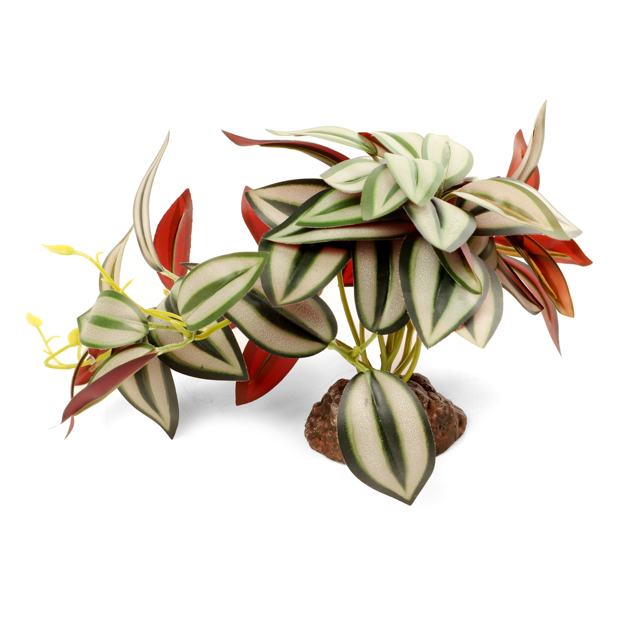 Растения - это не только завершающий штрих в оформлении, но и необходимый атрибут любого террариума. Они дают укрытие и тень, по ним животное может перемещаться, они придают трехмерность внутреннему пространству террариума. Пластиковое растение на подставке из керамики подходит для оформления пустынных, полупустынных и тропических террариумов. Неоспоримое преимущество искусственных растений в том, что им не нужен полив, в них не заводятся паразиты и грибки, их легко мыть и дезинфицировать, и прослужат они неизмеримо дольше, чем живые растения.