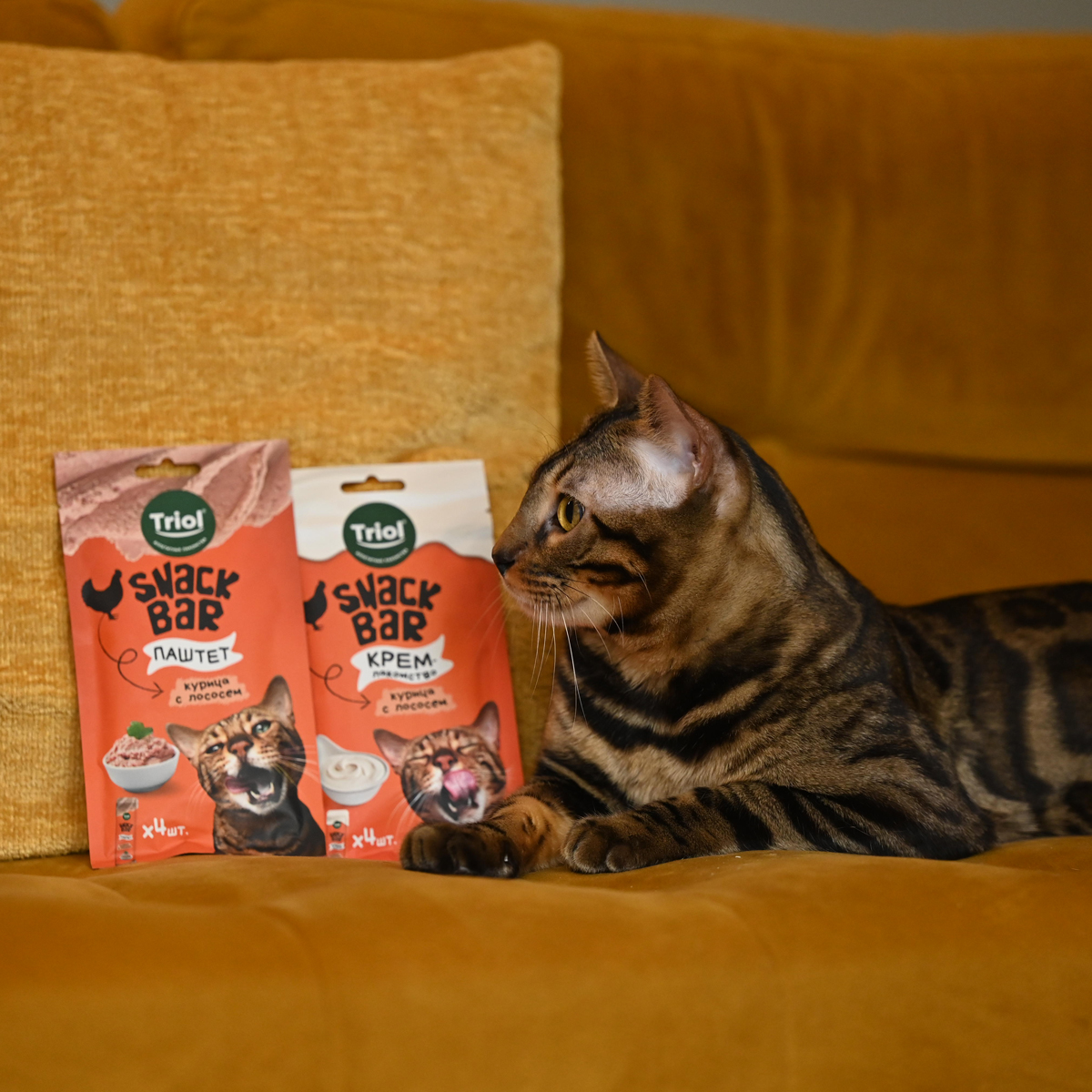 Лакомство для кошек "Крем из курицы с лососем", 40г, серия SNACK BAR, Triol
