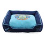 Очень комфортная лежанка c высоким бортом с покрытием под замшу. Наполнитель - синтепон. Мягкая съемная подушка с дизайнерским принтом. Подушка имеет съемный чехол на молнии, удобный в стирке. Дно выполнено из водонепроницаемой ткани. Цвет: синий с голубым. Размер: 750*650*150мм.