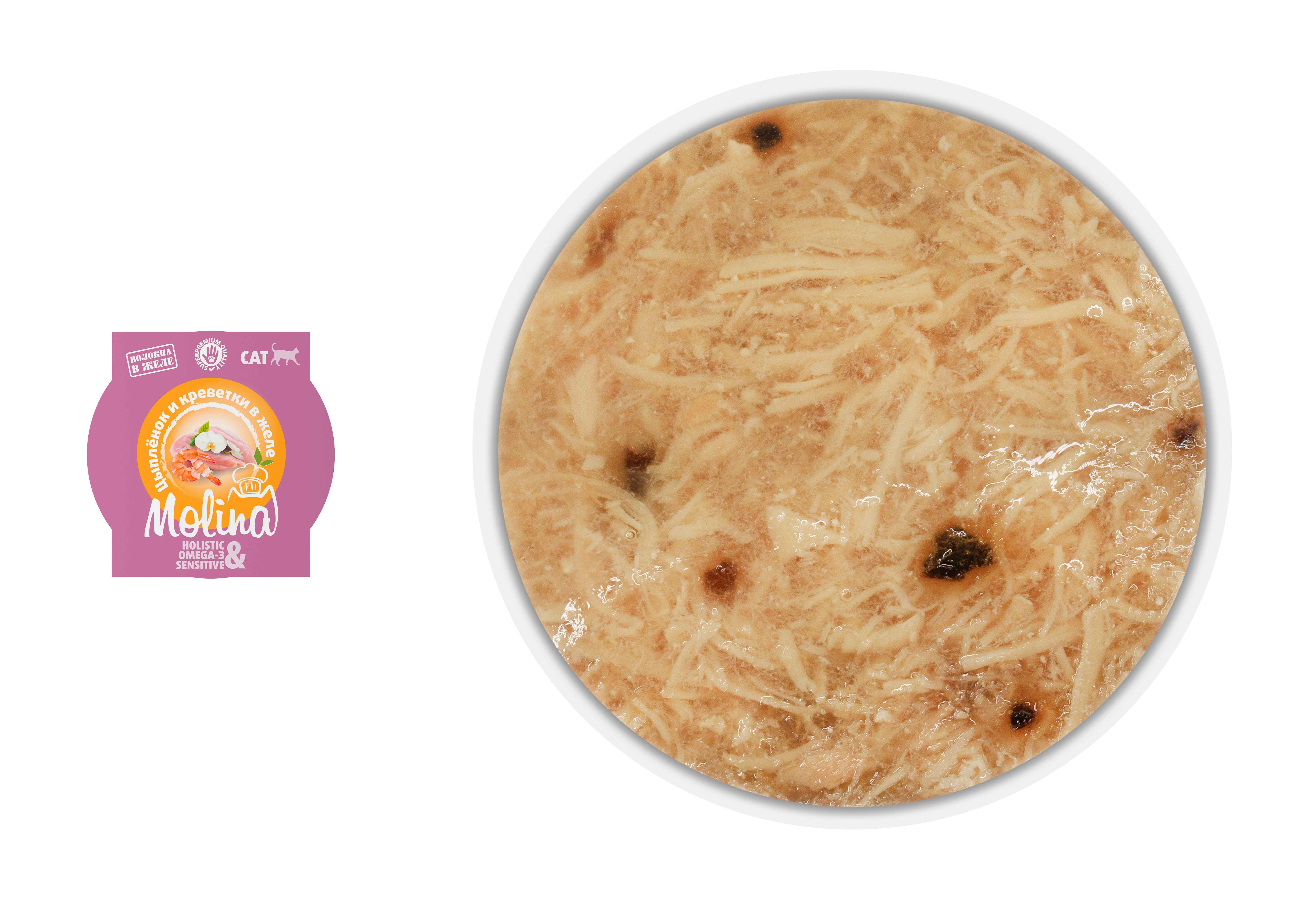 MOLINA. Ламистер для взрослых кошек. Цыпленок и креветки в желе, 75 г, 1061168
