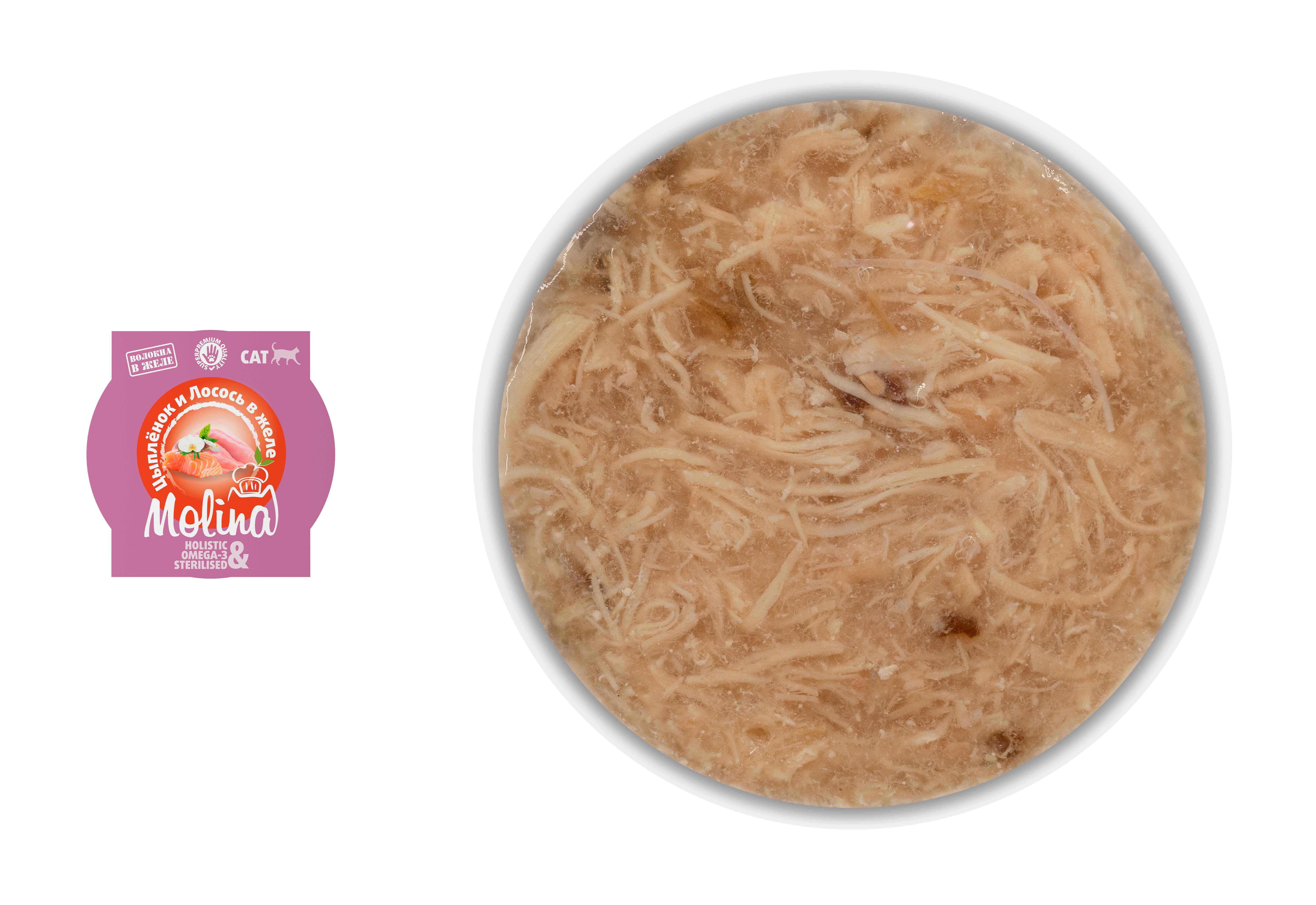 MOLINA. Ламистер для взрослых кошек. Цыпленок и лосось в желе, 75 г, 1061199