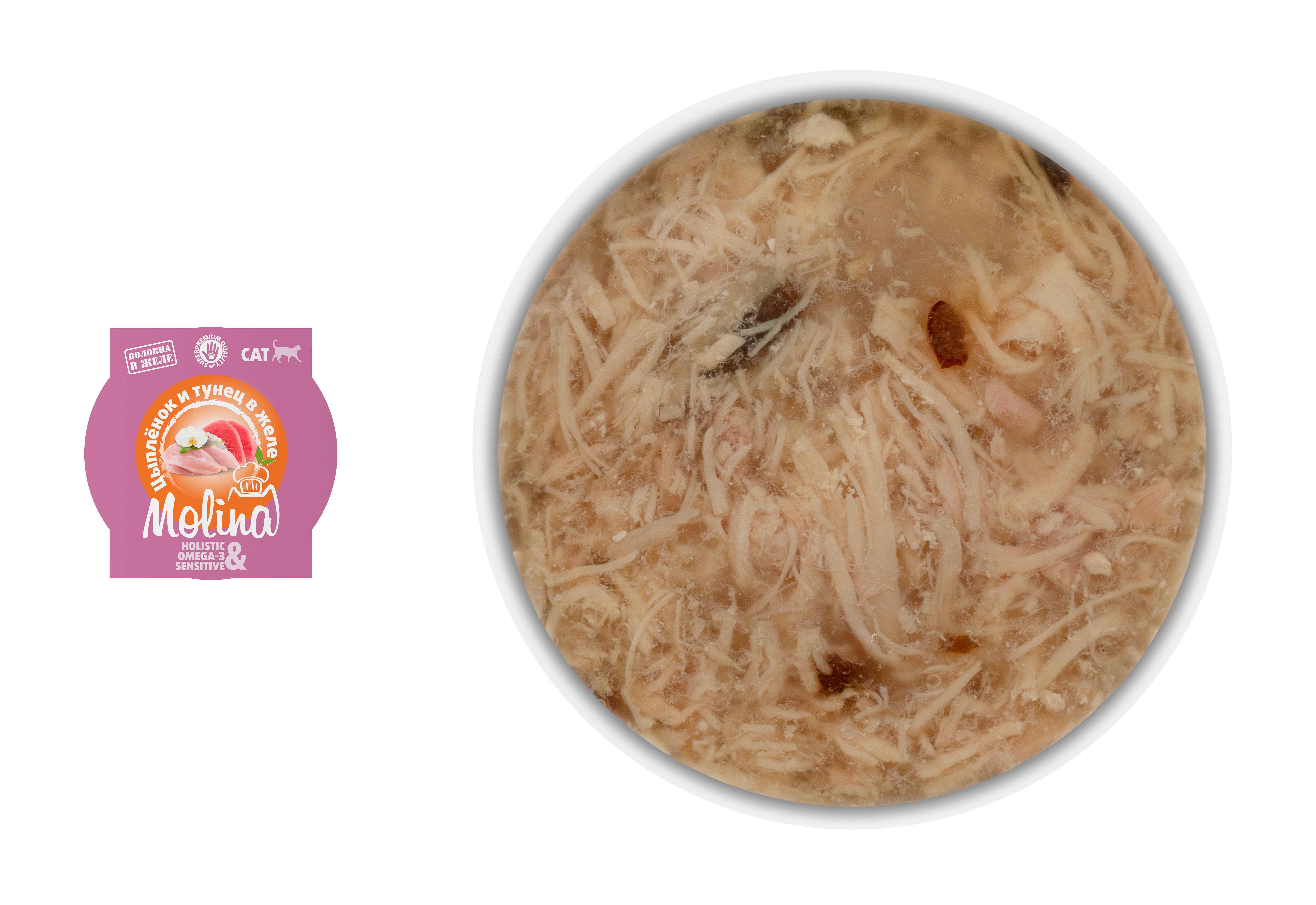 MOLINA. Ламистер для взрослых кошек. Цыпленок и тунец в желе, 75 г, 1061175