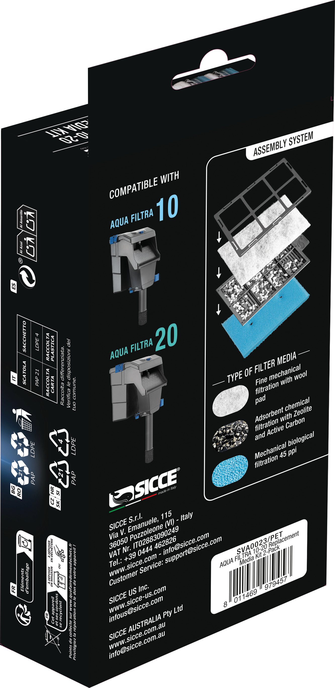 SICCE, Фильтрующий материал для фильтров "Aqua Filtra 10 и 20" /губки, синтепон, цеолит, уголь/ 2 шт., 79457