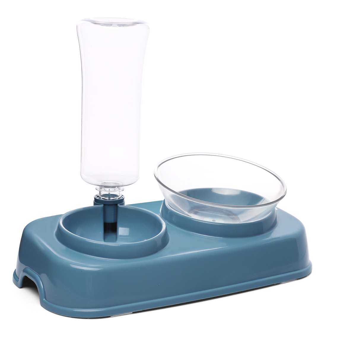 Кормушка-автопоилка - это функциональный аксессуар 2в1. Корм насыпается в миску, а вода - в вертикальную бутылку. Под действием атмосферного давления вода удерживается в ней и дозированно поступает во вторую миску по мере выпивания животным. Использование кормушки-автопоилки гарантирует чистоту и доступность воды для домашнего питомца в любое время. При этом все элементы кормушки выполнены из качественного пластика и легко разбираются на составные части, что очень удобно при гигиенической обработке и транспортировке. Изделие не скользит благодаря антискользящим накладкам, которые позволяют разместить его на любой поверхности. Цвет: синий. Размер изделия: 335*195*285мм. Объем бутылки: 680мл. Размер бутылки: d80*225мм. Размер миски: диаметр верха - 155мм, диаметр дна - 60мм, высота - 65мм. Объём миски: 330мл.