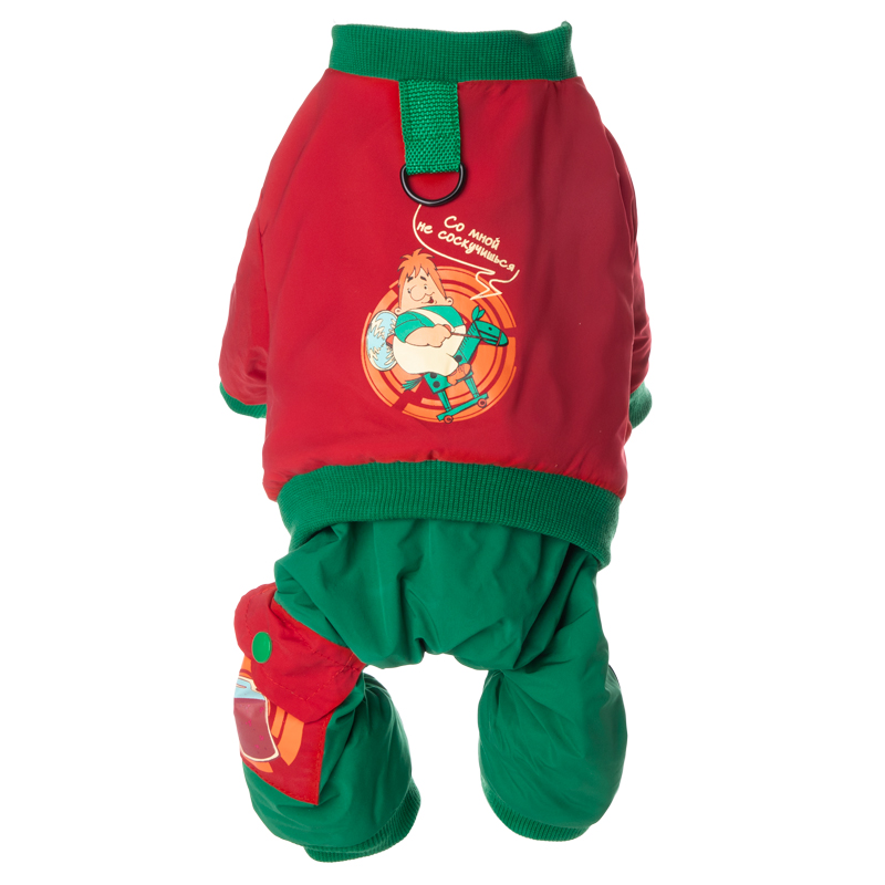 Комбинезон-дождевик по мотивам любимого советского мультфильма выполнен из воздухопроницаемого материала, который обеспечивает сухость собаки во время прогулок под дождем. Застегивается на кнопки на груди, пах открыт. Комбинезон полностью закрывает тело животного, защищая его от намокания и замерзания. Цвет: красно-зеленый. Размер: S, длина по спинке 25см.