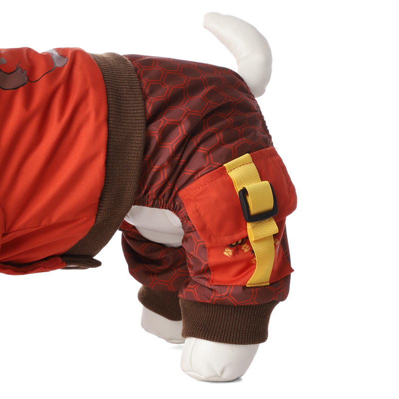 Комбинезон-дождевик по мотивам любимого советского мультфильма выполнен из воздухопроницаемого материала, который обеспечивает сухость собаки во время прогулок под дождем. Застегивается на кнопки на груди, пах открыт. Комбинезон полностью закрывает тело животного, защищая его от намокания и замерзания. Капюшон по размеру для любителей комфорта. Цвет: терракотовый. Размер: L, длина по спинке 35см.