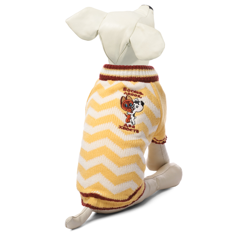 Свитер по мотивам любимого советского мультфильма - это удобный и функциональный аксессуар для собак, который просто незаменим в холодную погоду. Изделие защитит вашего питомца от ветра и согреет в непогоду, а универсальный фасон не будет стеснять движений питомца во время прогулки. Такой свитер со стильным дизайном станет украшением гардероба вашего питомца. Материал: акрил. Цвет: желто-белый. Размер: 25см (S).