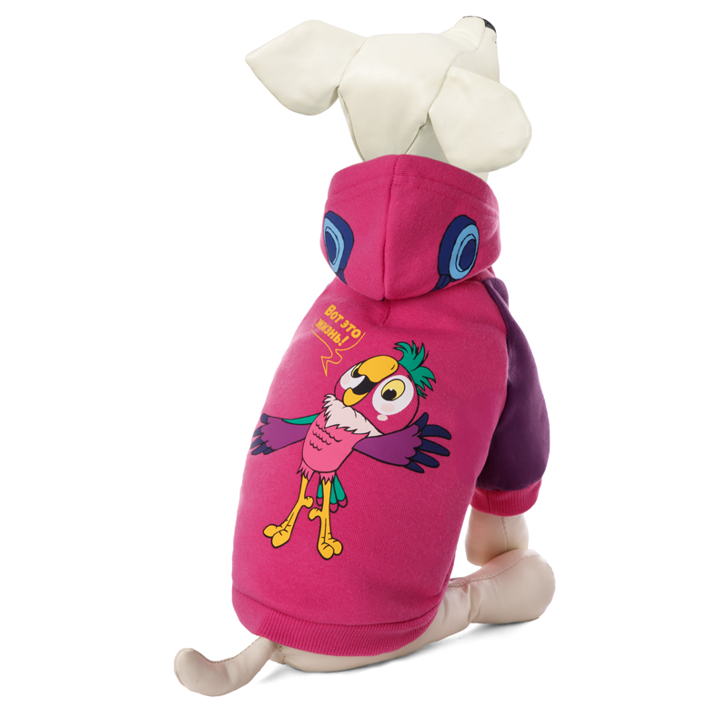 Толстовка "Вот это жизнь" - это стильный и функциональный аксессуар для собак на каждый день по мотивам любимого мультфильма. Изделие имеет оригинальный дизайн и принт с популярным героем на спине. Толстовка надевается через голову. На рукавах предусмотрены удобные резинки, фиксирующие изделие на лапах животного, а универсальный фасон не стесняет движений питомца во время прогулки. Цвет: розово - фиолетовый. Длина по спинке: 350мм; обхват груди: 460мм; обхват шеи: 330мм.