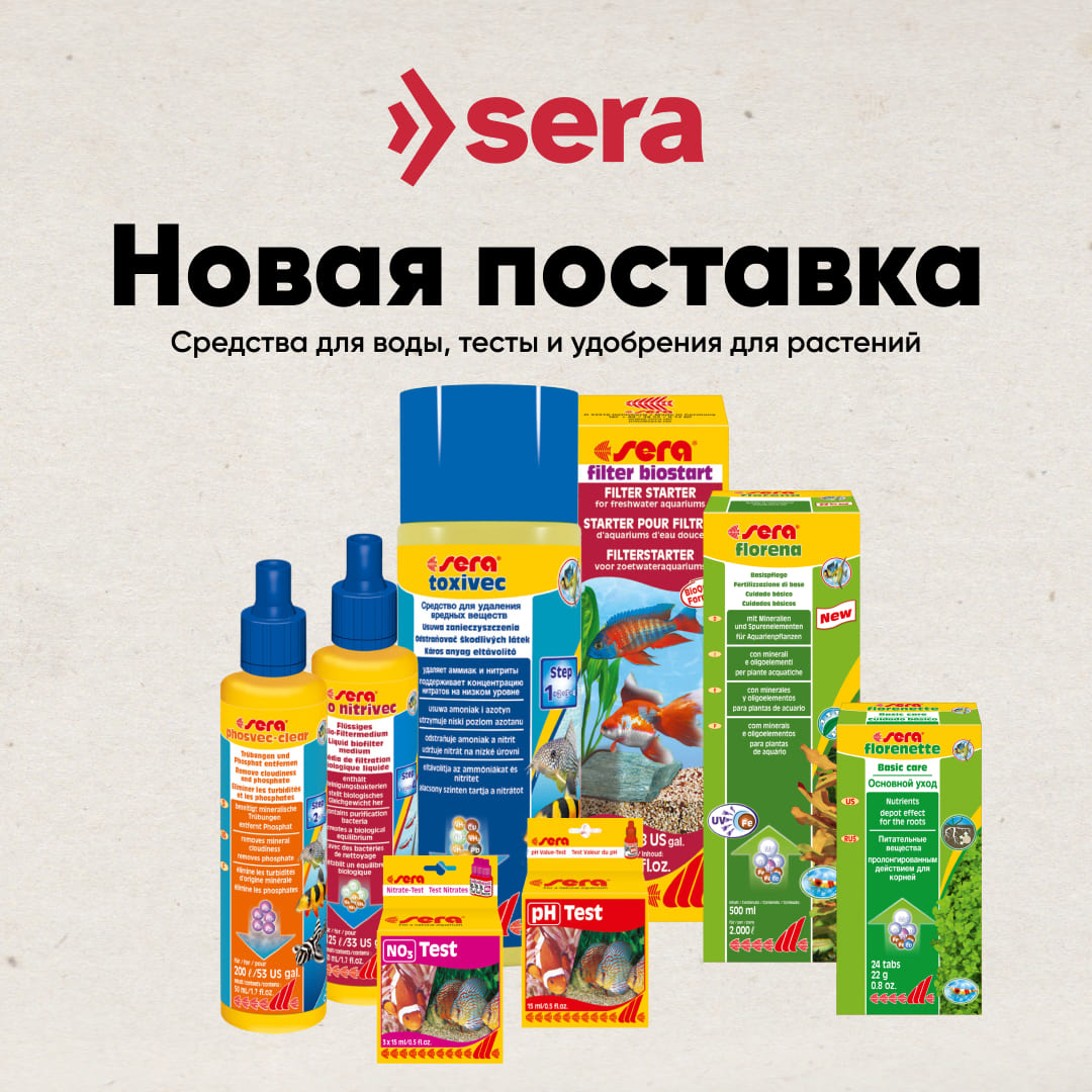 Информируем вас о новом поступлении широкого ассортимента продукции бренда Sera на наши склады. Поступление включает в себя все ключевые категории товаров для комплексного оснащения и обслуживания аквариумов.
