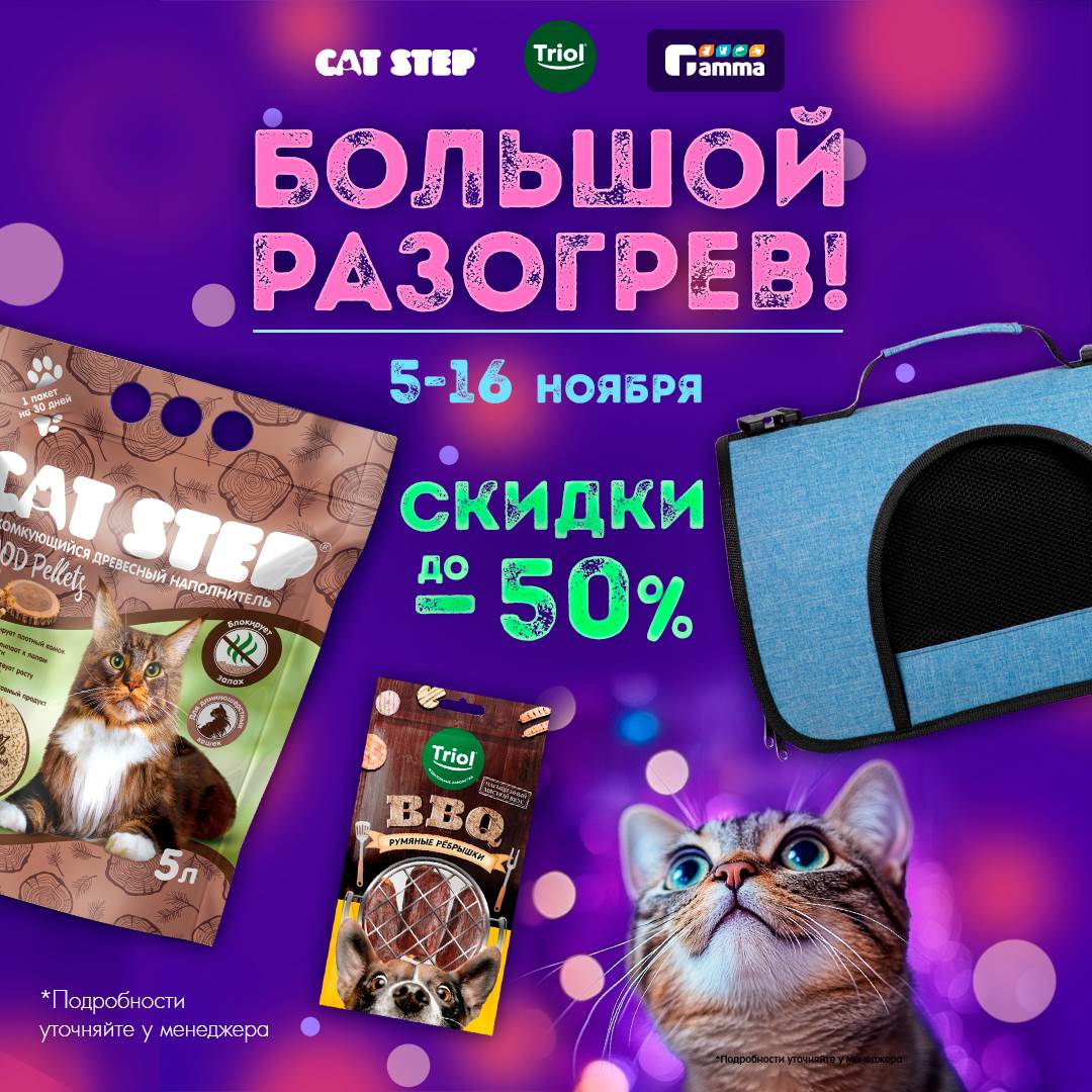 С 5 по 16 ноября дарим внушительные скидки до 50% на лучшие товары для питомцев от проверенных брендов: